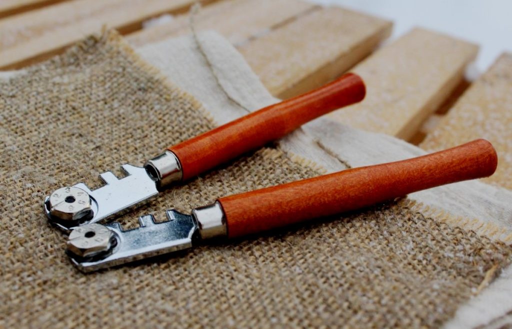 Versi klasik - di kepala ada satu atau lebih alur dengan lebar yang berbeda. Ada model populer dengan alur pada batang kecil yang menempel pada poros pegangan. Berkat ceruk seperti itu, tepi kaca pecah. Alur membantu menghilangkan material berlebih jika kerusakan tidak terjadi pada markup.Anda juga dapat menggunakan penjepit atau tang khusus.