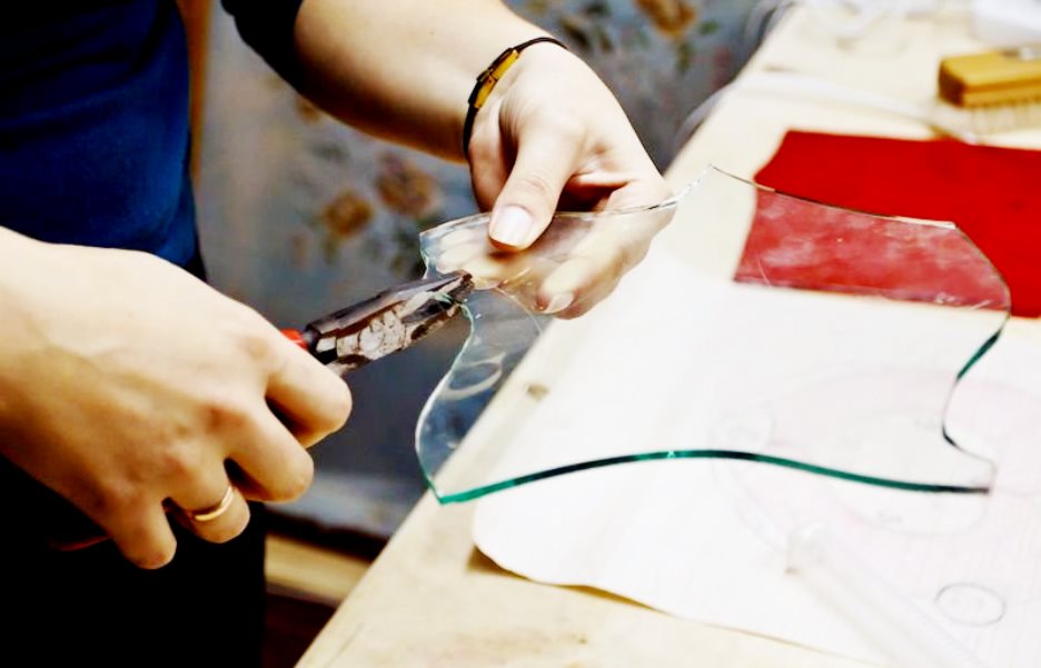 Saat bekerja dengan kaca bergelombang, potongan dibuat dari sisi yang halus. Tidak disarankan untuk memotong kaca tempered. Kerusakan sekecil apa pun menyebabkan mereka hancur menjadi partikel kecil.