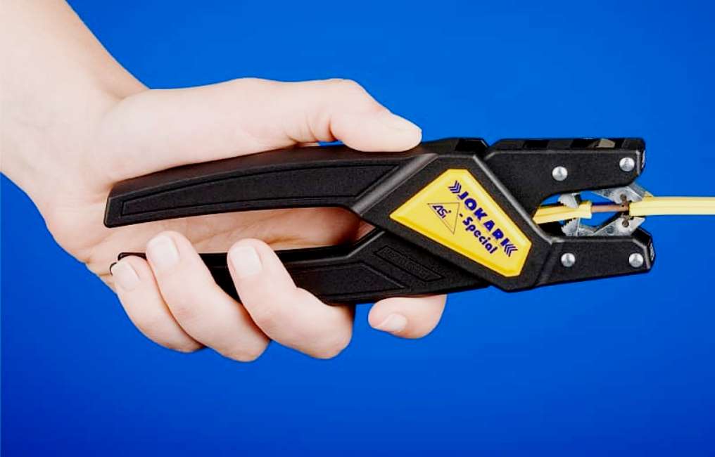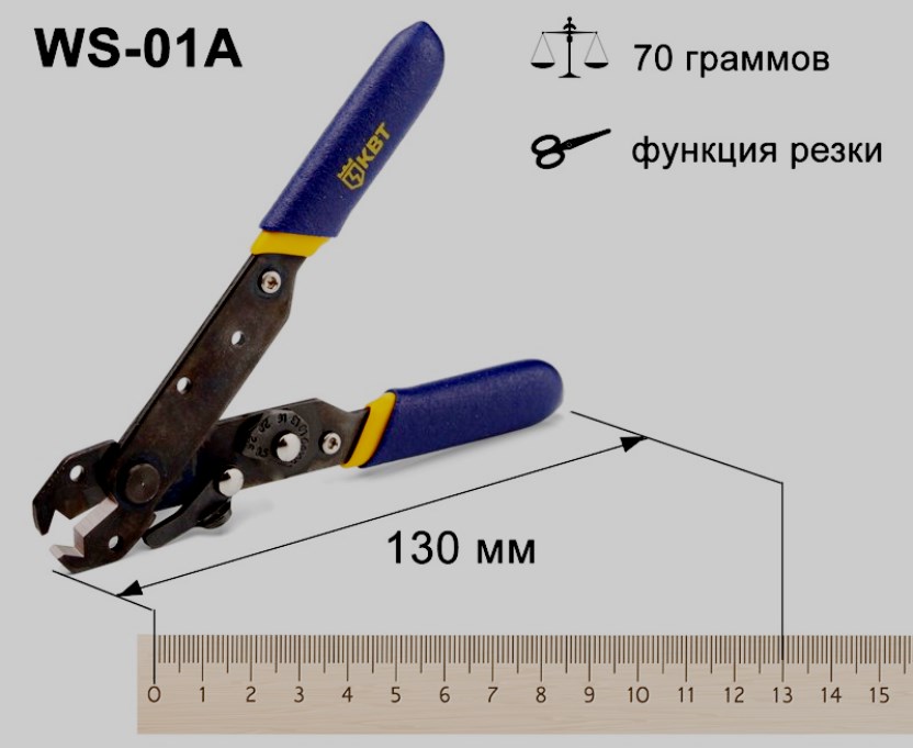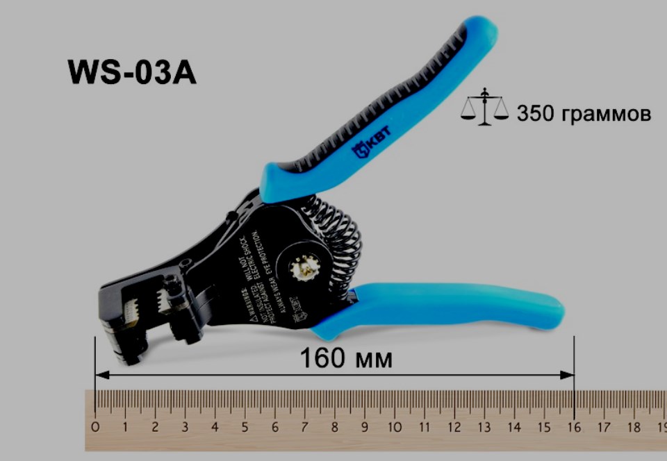 Pengupasan cepat dan efisien. Pembatas bekerja dalam mode otomatis, secara independen menyesuaikan dengan kabel yang digunakan. Sekrup digunakan untuk mengaturnya.