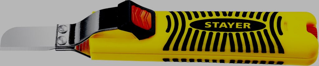 Aksesori yang disukai oleh pemula yang belum menentukan lingkup akhir penerapannya. Digunakan untuk melepaskan insulasi lama dari kabel 2-28 mm. Merek pabrikan - STAYER.Penarik tipe multifungsi terbuat dari bahan berkualitas tinggi. Para ahli mencatat keberadaan sumber daya luar biasa yang memungkinkan Anda melakukan pekerjaan listrik apa pun. Tutup pelindung tersedia. Dimungkinkan juga untuk menyesuaikan kedalaman pemotongan.