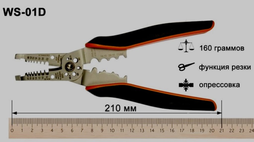 Secara lahiriah, mesin kecil ini menyerupai tang, tetapi di bagian dalam klem ada beberapa lubang dengan ukuran berbeda dengan bilah di sepanjang tepinya. Ini akan memungkinkan Anda untuk bekerja dengan bahan dengan ukuran standar apa pun. Model terbaik memiliki soket dengan ukuran yang ditandai dalam kasing, sehingga melepas insulasi dari kabel tidak akan menimbulkan kesulitan. Tepi kabel akan menjadi sempurna.