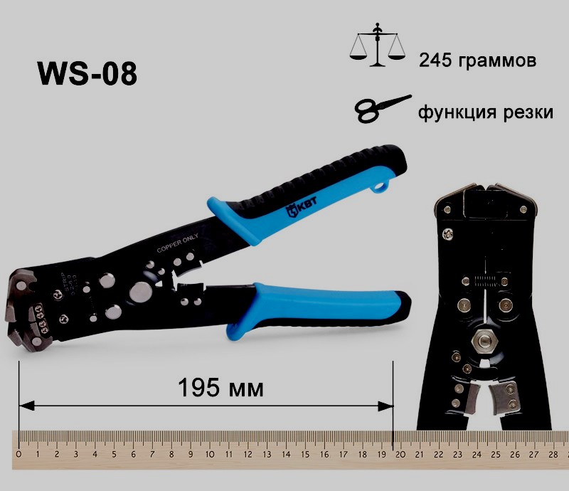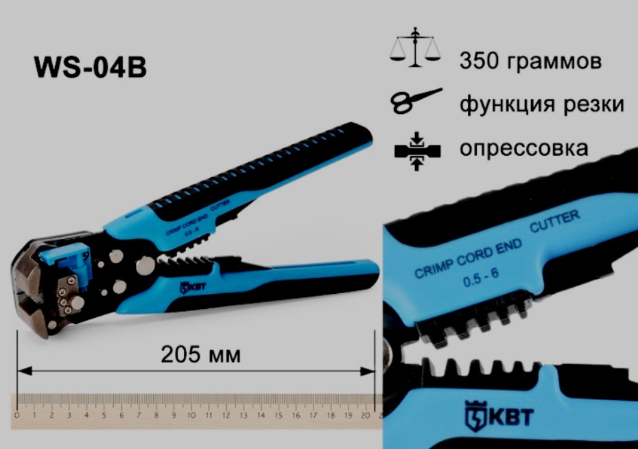 Rentang operasi 0,5-10 mm2. Mampu bekerja dengan tip (untuk crimping) NShV dan NShVI. Diperbolehkan untuk menghapus material lama dari kabel datar (PUNP, VVG-P). Tidak ada keluhan tentang pekerjaan perangkat. Banyak ulasan positif di jaringan mendukung pembelian perangkat semacam itu. Pisau tidak ditempatkan dengan baik. Tuas tidak nyaman digunakan, karena memiliki dimensi kecil.