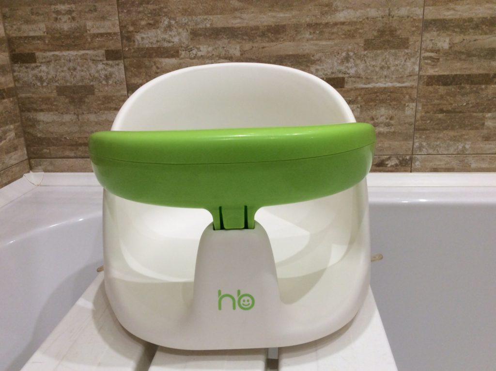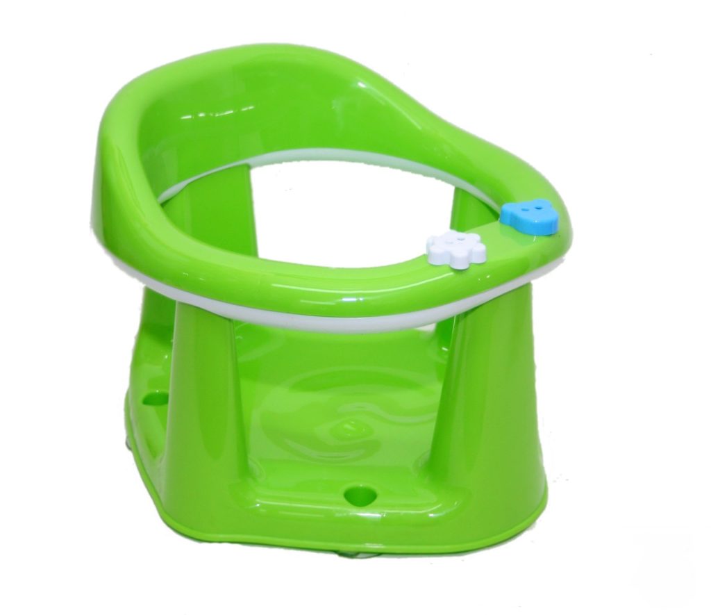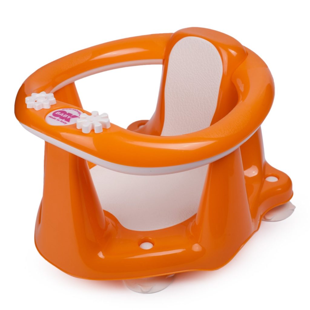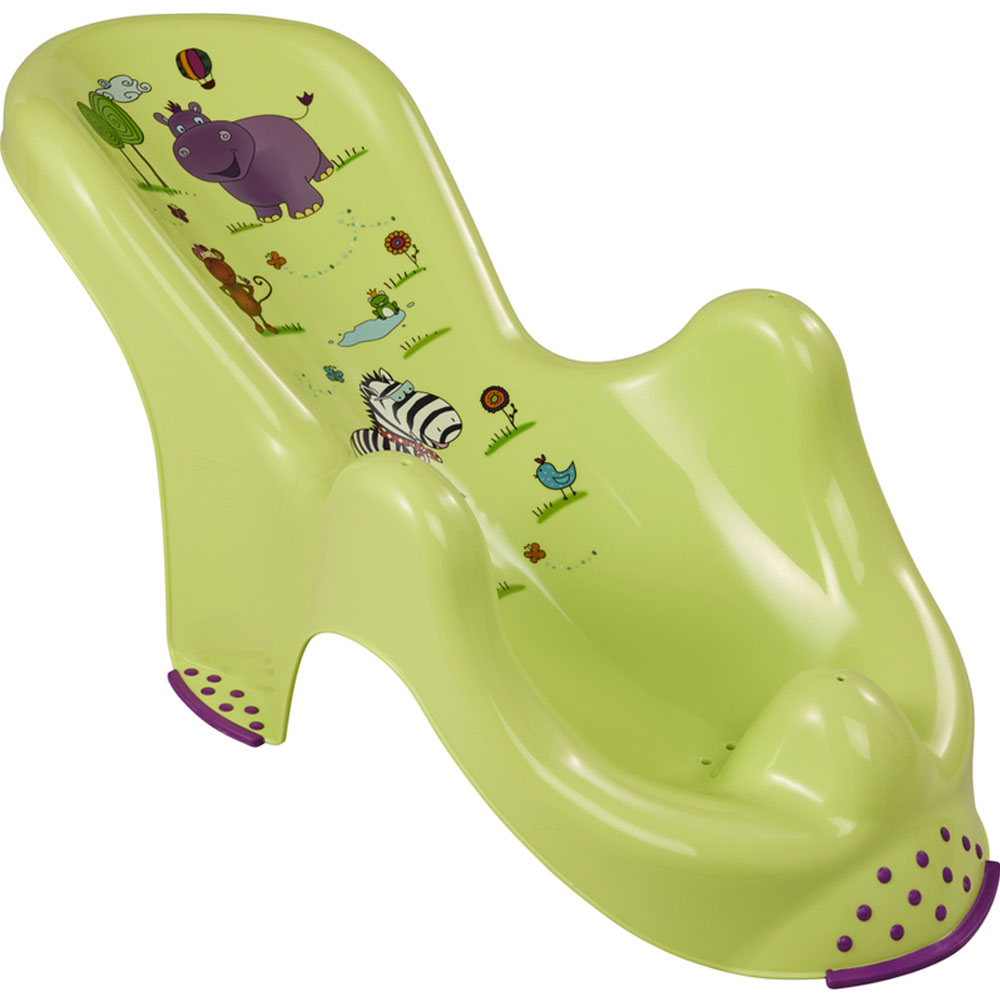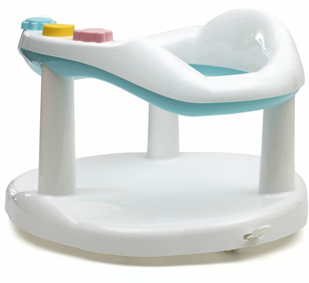 Kursi mandi bayi yang bisa digunakan sejak lahir akan memudahkan proses ini bagi orang tua. Sandaran memiliki 2 posisi, lebih datar dan lebih duduk. Bantal di sekitar kepala diisi dengan bola anti-stres.