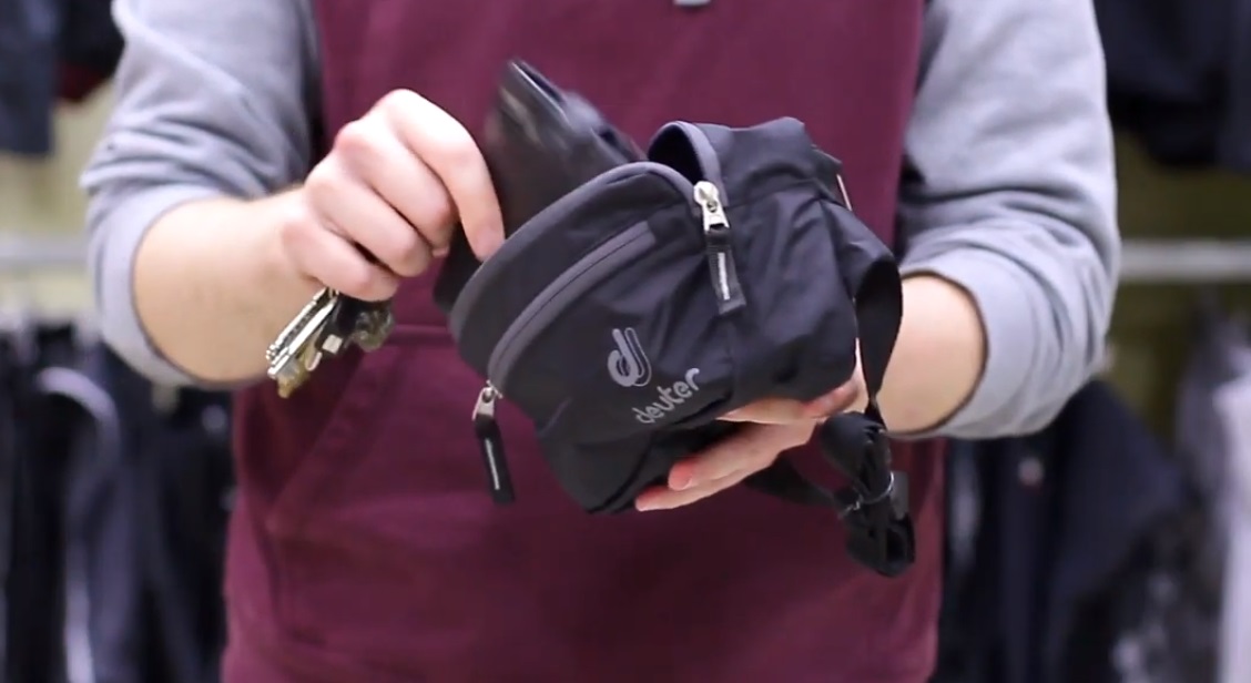 Banyak barang kecil dapat dengan mudah masuk ke dalam; smartphone, sebotol air atau tali tipis dapat dimasukkan ke dalam kompartemen yang luas. Bagaimana Anda akan memakai item ini - saku depan atau belakang - adalah masalah individu yang ketat.