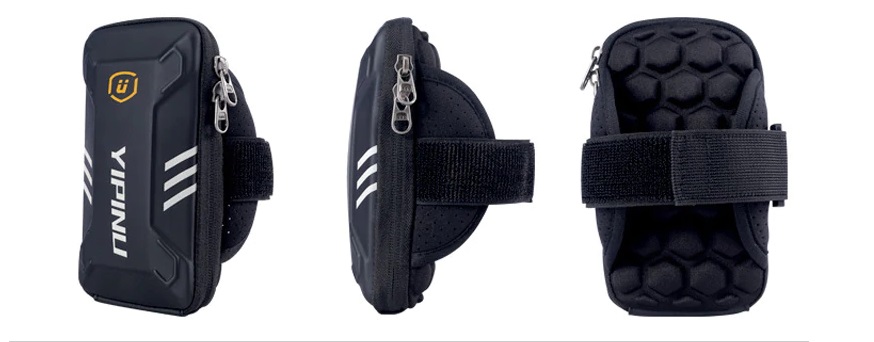 Tali velcro yang dapat disesuaikan menjaga model tetap kokoh di lengan. Kompartemen telepon memiliki sisipan transparan yang peka terhadap sentuhan. Melalui itu, mudah untuk mengontrol ponsel sentuh, mengubah trek musik atau menjawab panggilan. Ada lubang khusus untuk menghubungkan headphone berkabel.
