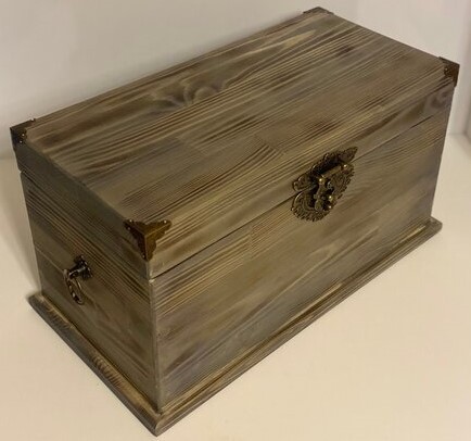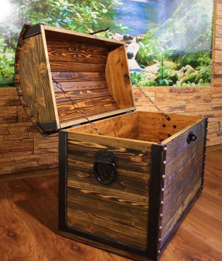 Model buatan tangan terbuat dari kayu pinus padat. Ini akan menambah semangat pada interior apa pun, dapat ditempatkan di lantai dan di atas meja atau rak. Pegangan memungkinkan Anda untuk pindah ke tempat yang nyaman. Kedalaman dada: 22 cm Berat: 3,7 kg. Harga rata-rata: 3900 rubel.