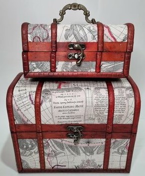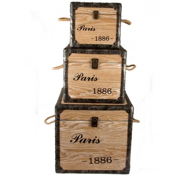 Set termasuk 3 peti dengan ukuran berbeda, dibuat dengan gaya yang sama. Mekanisme pembukaan: kait. Garansi pabrik: 2 tahun. Akomodasi: hanya di dalam ruangan. Dapat dipesan secara online dari toko web produsen. Semua model dibuat dengan tangan. Biaya rata-rata: 15290 rubel.