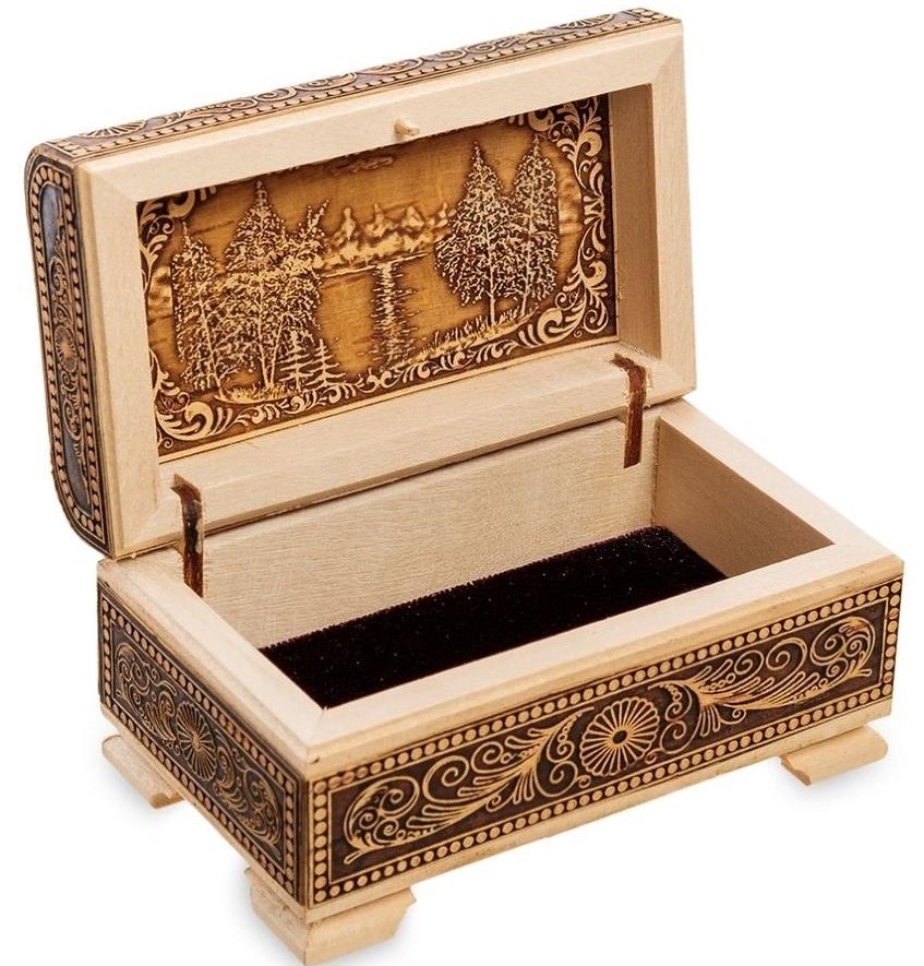 Model kayunya memiliki desain ukiran yang cantik dengan tutup yang praktis. Pelapisan dengan cat khusus berbasis air yang tidak berbau. Pilihan bagus untuk ditempatkan di lemari, di rak atau di atas meja. Dimensi: 40x50x34 cm Harga rata-rata: 1994 rubel.