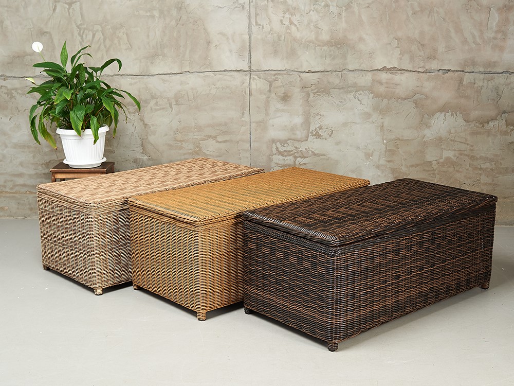Peti rotan terbuat dari rotan buatan. Luas, nyaman, tahan lama. Kaki kecil memudahkan untuk menyeka debu, tidak merusak penutup lantai. Bingkai yang terbuat dari aluminium membuat model tahan terhadap kerusakan mekanis. Berat: 24,5kg. Dimensi: 140x70x60cm. Biaya rata-rata: 78.000 rubel.