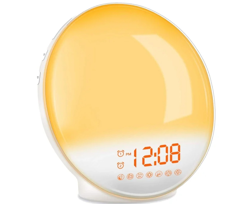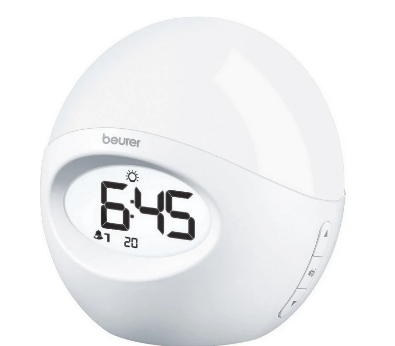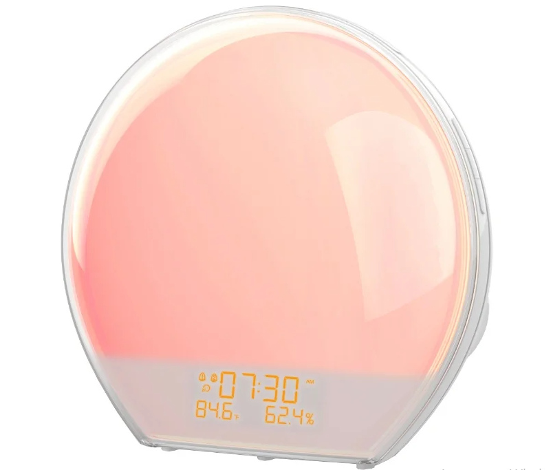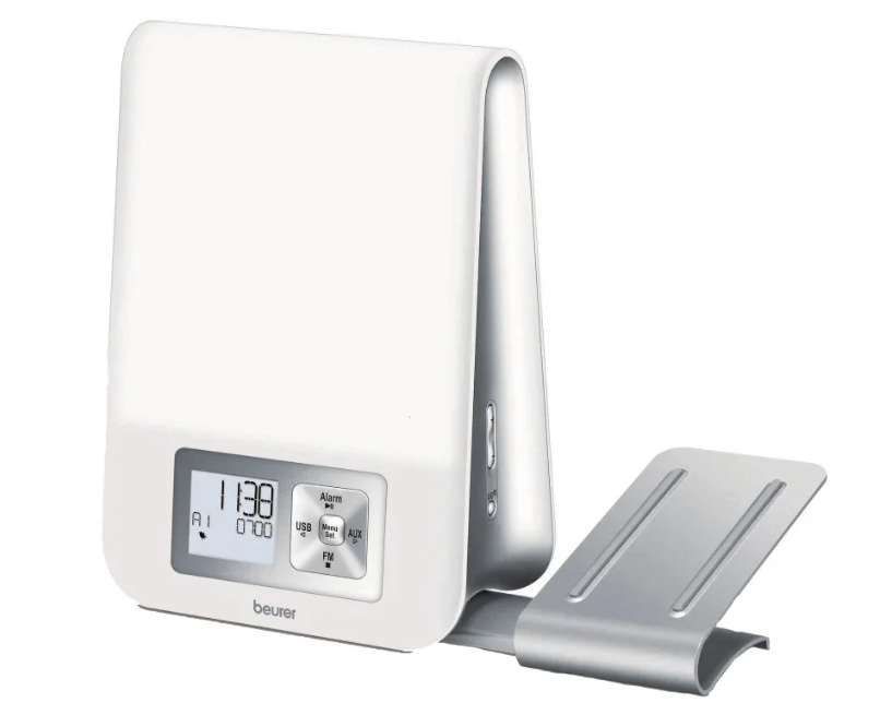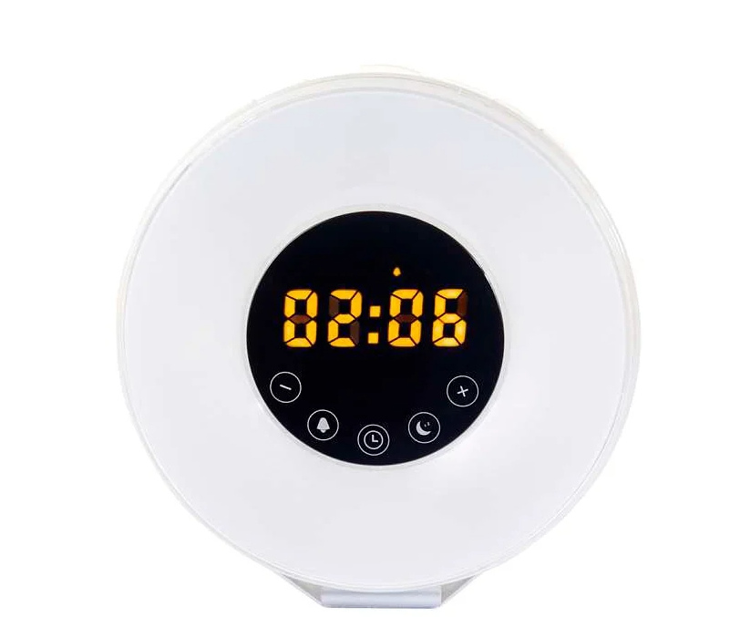 Ini adalah jam alarm yang mensimulasikan matahari terbit. Persiapan untuk kebangkitan dimulai dalam 30 menit - kecerahan meningkat secara bertahap. Bunyi bip pada waktu yang ditentukan menyelesaikan proses. Meningkatkan intensitas fluks cahaya memberikan kebangkitan yang mudah. Ada kondisi yang mirip dengan alam - ketika orang bangun dari sinar cahaya pagi.