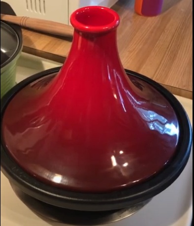 Tutup kerucut berulang kali mengembunkan uap dari hidangan yang dimasak, lalu turun dan merendam isi tagine.
