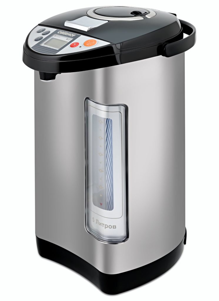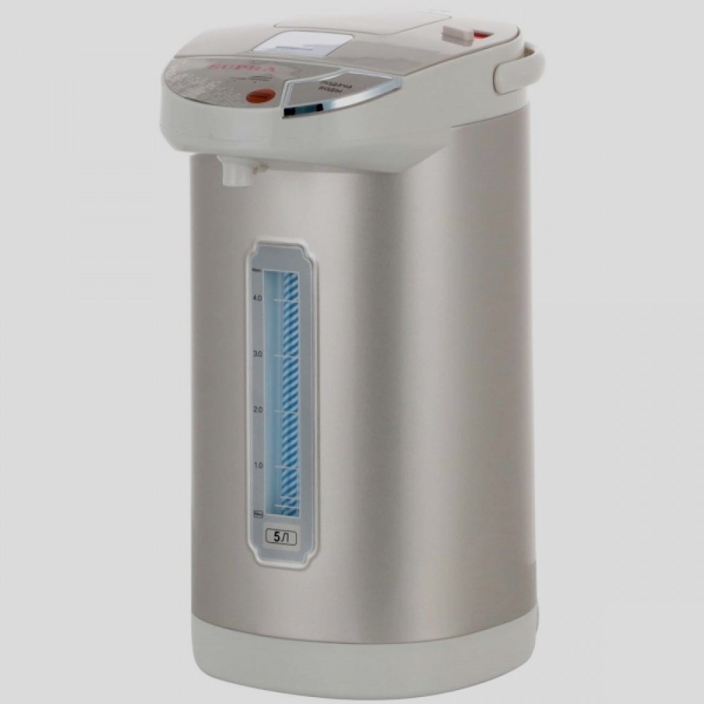 Perangkat dengan volume signifikan - 5 liter, dengan daya 750 watt. Memanaskan air dalam hitungan menit dan membuatnya tetap panas untuk waktu yang lama. Botolnya terbuat dari logam. Kasingnya adalah kombinasi dari plastik dan logam. Elemen pemanas adalah koil tertutup. Dinding tubuh ganda.