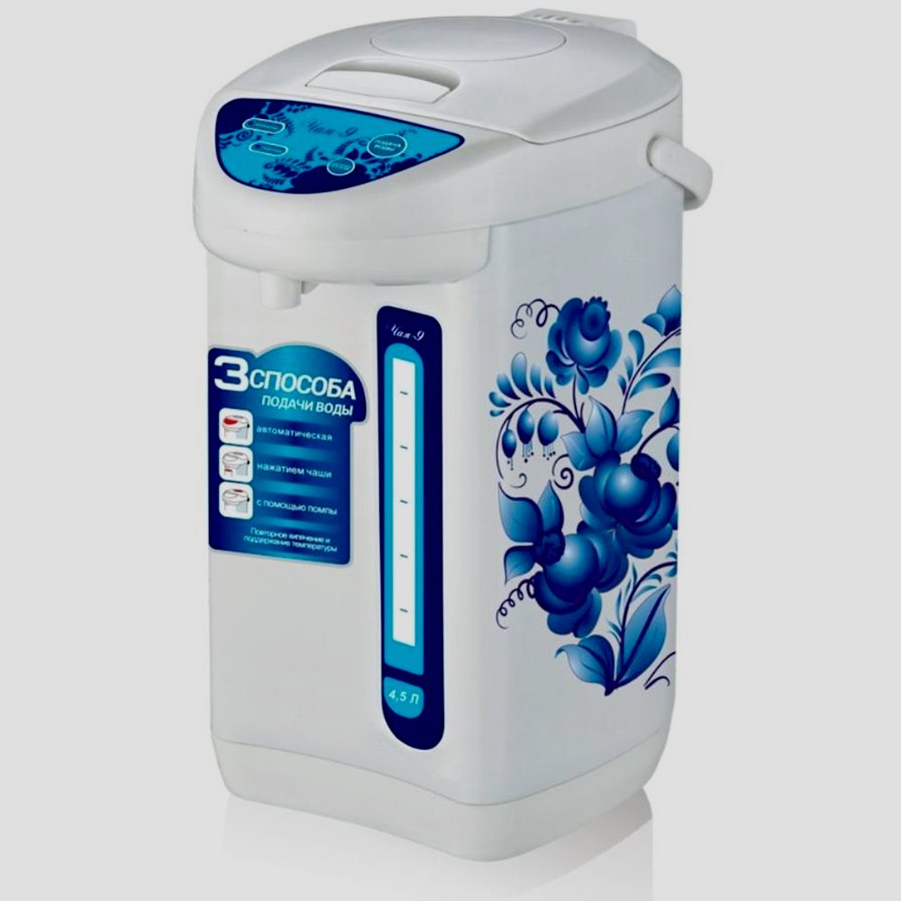 Berdasarkan ulasan pengguna, produknya sederhana, tetapi solid.Diproduksi oleh produsen dalam negeri. Air dituangkan melalui tombol atas, pompa atau menekan gelas. Volumenya besar, dan harganya tidak signifikan. Suhu pemanasan tidak dapat diatur. Fungsionalitas yang dideklarasikan adalah benar. Ada tombol power off. Volume - 4,6 liter. Botolnya terbuat dari logam. Spiral tertutup. Ada fungsi tetap hangat. Menarik pola yang menarik pada kasus ini.