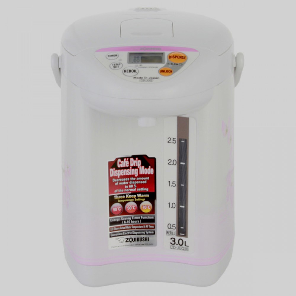 Perangkat ini sangat populer karena keandalan dan daya tahannya, meskipun harganya cukup mahal. Hemat energi karena daya rendah. Kisaran suhu dapat diterima. Kualitas bangunan Jepang dijamin. Ulasan pengguna sangat positif. Volume 3 liter sudah cukup untuk keluarga kecil. Pompa beroperasi dalam mode otomatis. Kasus ini plastik. Termostat disediakan. Ada juga fungsi keep warm, timer dan display. Casing dengan desain yang unik. Dimensi: 215 * 295 * 280 mm, berat - 2,8 kg.