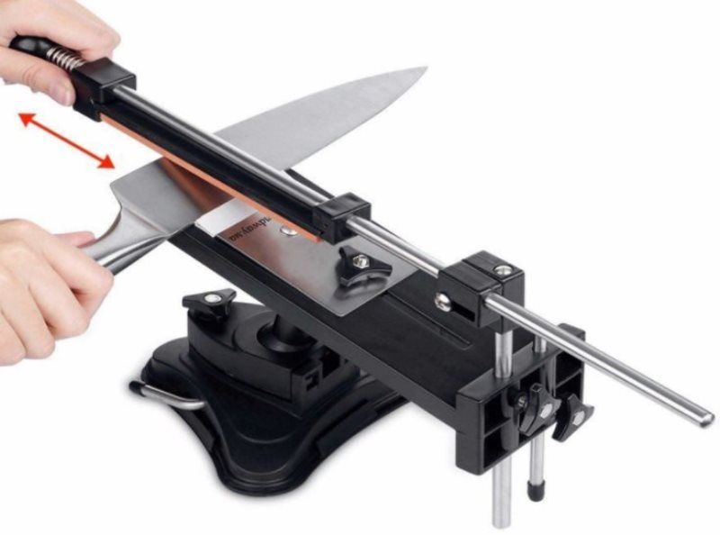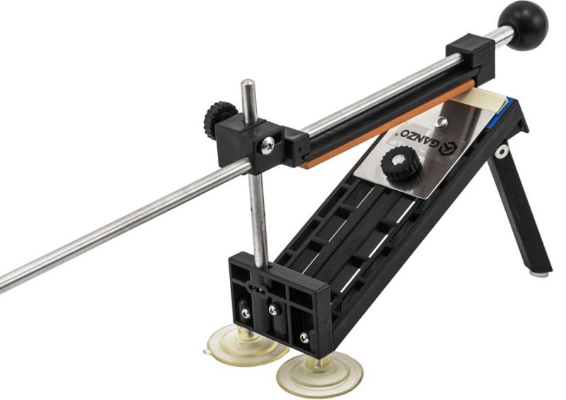 Model mesin pengasah pisau ini memiliki beberapa zona penajaman dan dipegang dengan kuat di atas meja berkat dudukan cangkir hisap. Struktur logam dengan kemampuan untuk mengatur sudut penajaman dan abrasif dari berbagai kekasaran dan kekerasan.