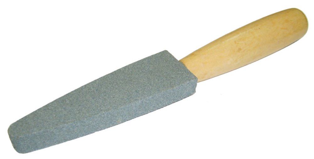 Alat manual untuk mengasah pisau dengan ujung tombak yang halus. Batu ini terbuat dari bahan abrasif grit sedang. Parameter batang oranye adalah 8/1,2 cm.