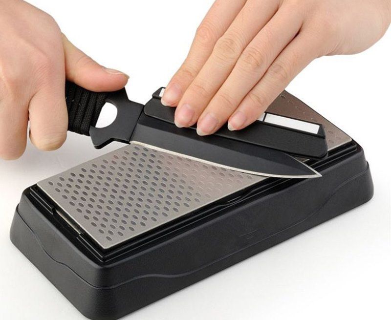Ini memiliki sudut penajaman yang tetap (15-20 derajat). Cocok untuk mengasah pisau biasa dan bergerigi. Dibuat di USA