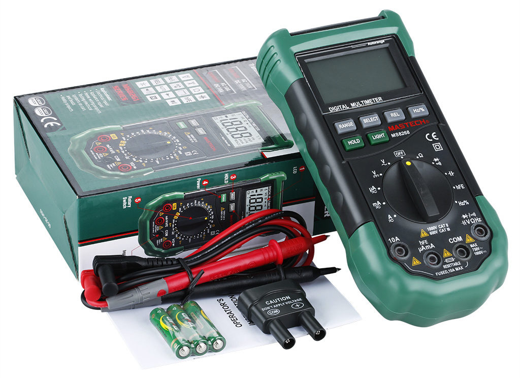 Mastech MS8268 adalah salah satu model multimeter teratas dari merek Amerika yang terkenal. Keuntungan utamanya adalah memungkinkan Anda melakukan pengukuran dalam mode pengukuran relatif (REL). Ini memberikan hasil yang cukup akurat, memiliki impedansi input tinggi dan konstruksi yang solid.