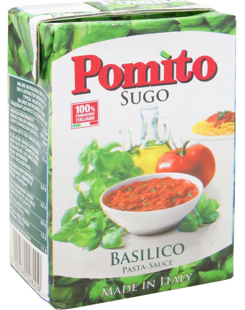 Ideal untuk membuat pasta, mengandung rempah-rempah, kemangi, minyak zaitun. Rasanya segar, tomat, ringan, tanpa asam. Konsistensi homogen, tidak terkelupas saat dipanaskan. Ada pati dalam komposisi, tetapi hampir di tempat terakhir dalam daftar, sehingga praktis tidak terasa.
