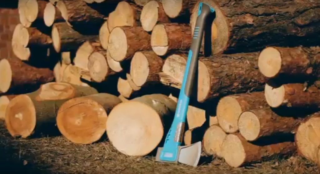 Berat kapak adalah 1200 g dan bilah yang tajam dengan sempurna mengatasi kayu kecil dan memotong kayu bakar.