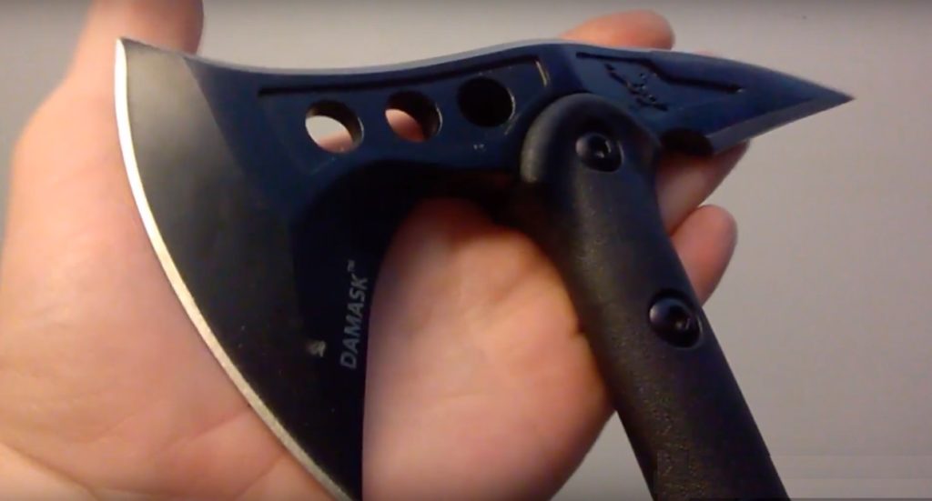 Dengan fungsinya yang kecil, tomahawk terlihat gaya dan mengesankan baik dalam pengoperasian maupun dalam casing nilon yang disertakan dalam paket.