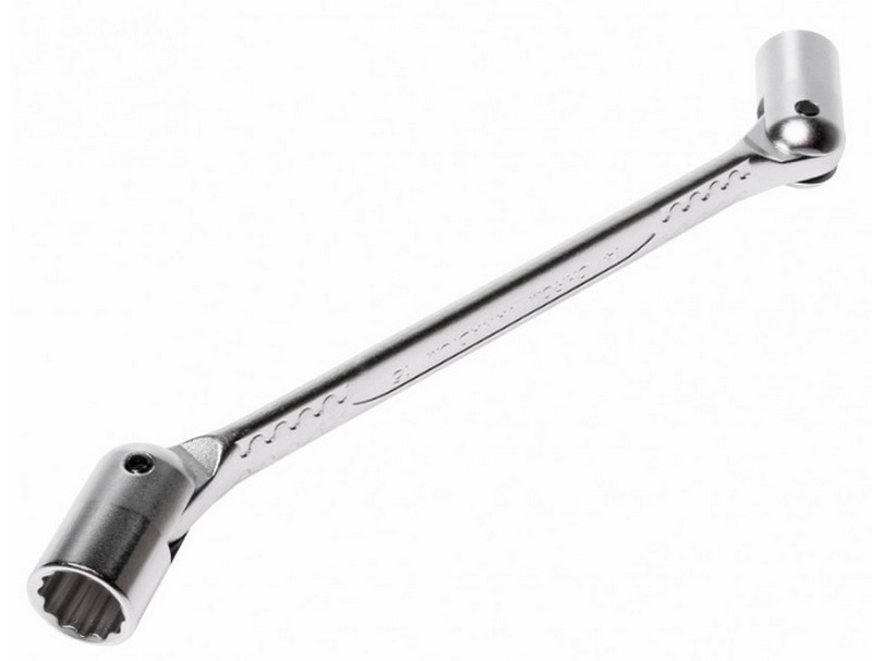Contoh lain, langsung diorientasikan untuk digunakan di bidang pekerjaan mekanik mobil.Baja chrome-vanadium tugas berat digunakan untuk membuat kasing, yang berarti ketahanan tinggi terhadap beban berat. Karena lokasi takik khusus pada pegangan, pegangan tangan operator yang andal disediakan, bahkan dengan tangan basah atau sarung tangan kain. Total panjang kunci adalah 242 mm dan berat 235 gram. Profil kerja memiliki dimensi 14 dan 12 milimeter. Lapisan matte melindungi casing dari goresan kecil. Harga eceran yang direkomendasikan adalah 810 rubel.
