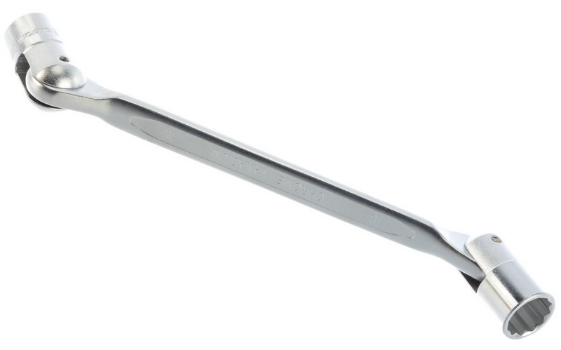 Jenis ini menyiratkan adanya engsel, yang memungkinkan artikulasi bagian seperti itu, di mana mereka dapat bergerak relatif satu sama lain di beberapa bidang sekaligus. Model dengan engsel digunakan dalam kasus di mana perlu untuk mengencangkan / membuka mur di ruang terbatas (dengan kata lain, terletak di tempat yang sulit dijangkau). Dalam hal ini, sumbu rotasi perangkat terletak pada sudut ke elemen kerja (mur). Model ini bisa ganda atau tunggal (yang pertama memiliki kepala dengan engsel di kedua sisi).