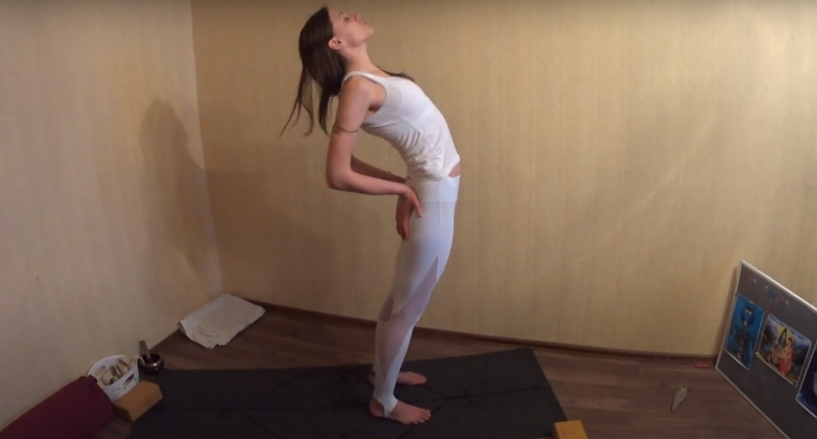 Latihan yang cukup sederhana yang meredakan ketegangan di punggung dan meregangkan tulang belakang, pinggul, mengembangkan fleksibilitas dan membantu meletakkan bahu di tempatnya dan meluruskan dada.