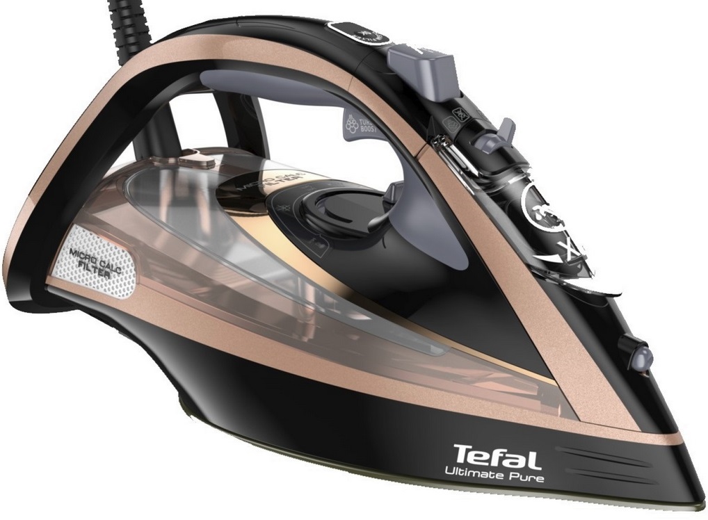 Setrika paling kuat di peringkat ini, mampu bersaing dengan generator uap lengkap. Tefal Ultimate Pure FV9867 dilengkapi dengan sistem pembangkit uap yang inovatif. Daya perangkat - 3.000 W, dorongan uap - 260 g / mnt. Karakteristik seperti itu memberikan penghalusan kerutan yang ideal dari segala kerumitan. Tombol penambah uap terletak di dekat jari telunjuk di bawah pegangan. Tefal Ultimate Pure FV9867 juga dilengkapi dengan filter Micro Calc yang dirancang untuk memurnikan udara panas yang disuplai dan menahan partikel kerak. Ini sepenuhnya menghilangkan risiko tanda pada kain. Outsole Durilium AirGlide berkekuatan tinggi dengan lapisan Autoclean memberikan kemudahan meluncur tanpa lengket ke permukaan. Tangki air dirancang untuk 350 ml air. Biaya rata-rata adalah 14.110 rubel.