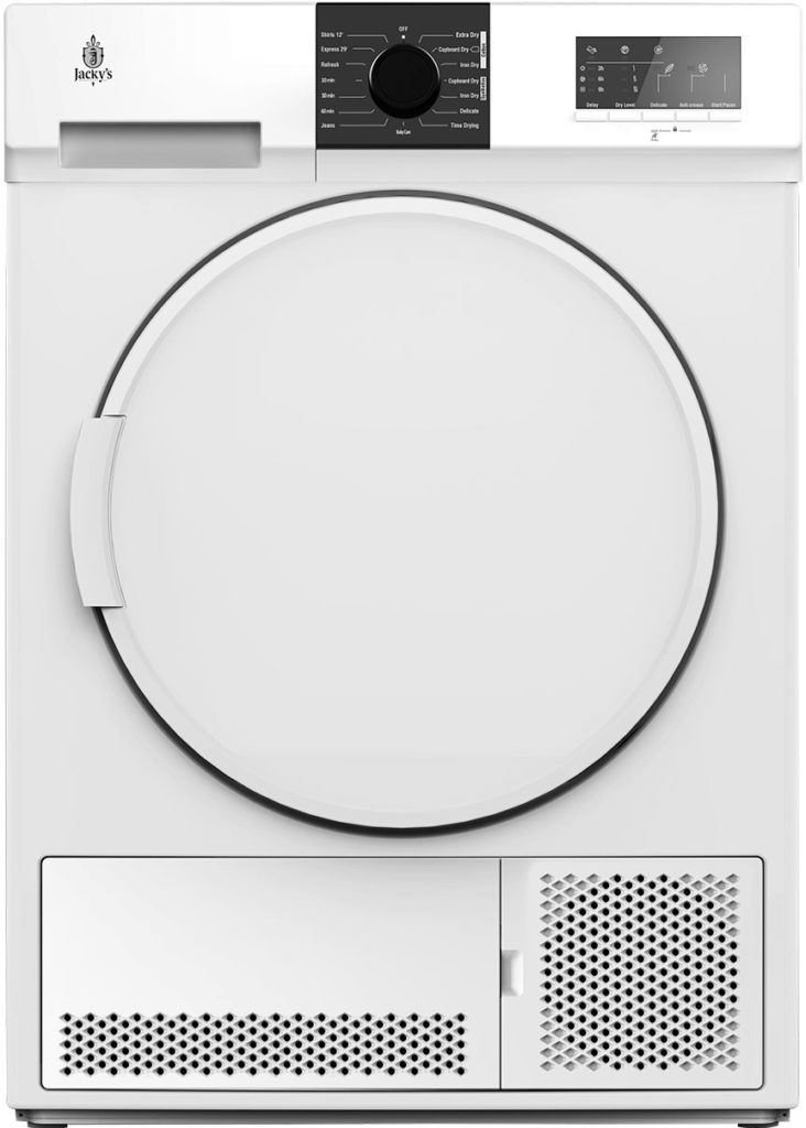 Mesin pengering pakaian dengan cepat memproses pakaian dan menghilangkan serat dan debu. Cocok untuk kamar di mana ada sedikit ruang. Dapat dipasang di mesin cuci atau di bawah meja. Kapasitas drum pemuatan adalah 9 kg.