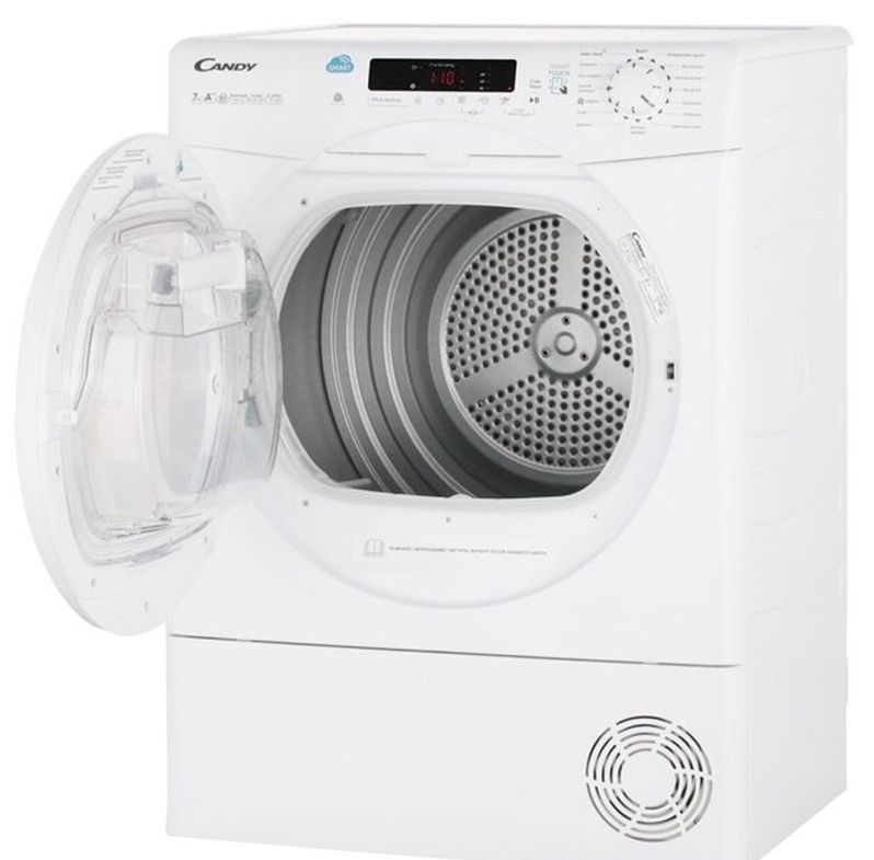 Pengering kondensor memiliki kapasitas 7 kg. Sensor khusus dipasang pada drum, yang secara independen menentukan tingkat kelembaban dan mengatur waktu yang diperlukan, perlu juga dicatat bahwa model beroperasi dalam 12 mode. Karena itu, Anda dapat memilih mode yang sesuai, tergantung pada jenis tisu.