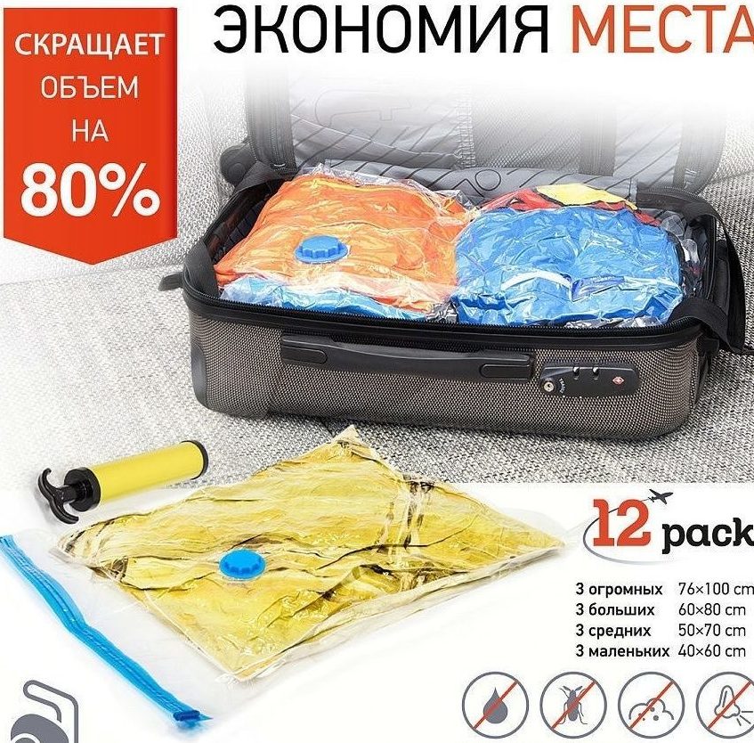Satu set tas vakum, satu set 8 buah berukuran 50x70,80x100,60x80, serta pompa tangan, paket memiliki katup dan ritsleting. Set ini dapat digunakan kembali dan akan memberikan kenyamanan di lemari Anda. Tas cocok untuk menyimpan dan mengangkut pakaian luar, vakum akan melindungi barang-barang Anda dari serangga, kelembaban, debu dan jamur. Pilihan yang cukup andal dan ekonomis untuk melindungi dan menyimpan pakaian luar. Keuntungan yang berguna adalah bahwa petunjuk penggunaan ditempatkan pada kemasan. SET YANG BAIK. STAFF berjanji untuk menghemat 80% ruang. Terbuat dari polietilen dan poliamida. Paketnya tahan air dan disegel, yang membuatnya lebih andal.
