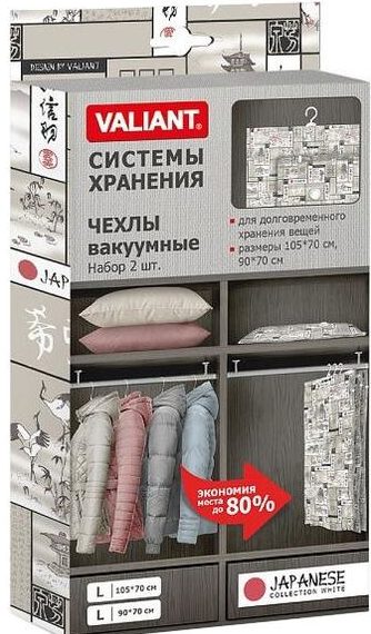 Dalam satu set kotak vakum Valiant Jepang putih 2 buah. Dua sampul dengan dimensi 105x70 dan 90x70. Akan sangat nyaman untuk menyimpan pakaian musiman di dalamnya, dalam bentuknya yang biasa akan memakan banyak ruang, tetapi dalam ruang hampa, ruang di lemari akan disimpan hingga 80%. Selain tujuan yang bermanfaat dan kemampuan untuk menggunakan kembali vakum, ada juga tambahan yang menarik. Kasing Valiant memiliki desain yang spektakuler, tetapi dalam koleksi putih Jepang terdapat kasing bergaya Jepang modern yang akan mengesankan penggemar budaya Timur.
