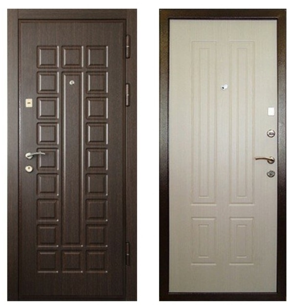 Setiap pintu apartemen yang terbuat dari logam terdiri dari beberapa bagian, termasuk kotak dan kanvas yang melekat padanya. Peralatan permanen untuk jenis produk ini adalah: satu atau lebih kunci, lubang intip, dan pegangan.