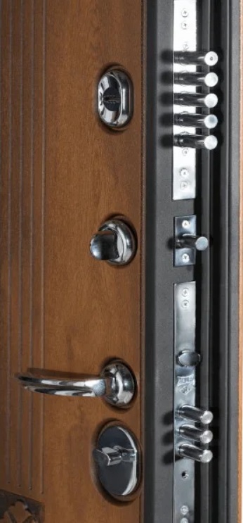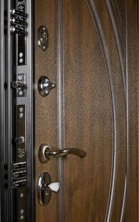 Karena kualitas bahan yang tinggi, "TermoWood" secara andal melindungi rumah dari gangguan. Pabrikan memasukkan kunci Kale ke dalam produk jadi. Ketebalan baja canai dingin yang digunakan untuk produksi adalah 2mm. Juga, sebagai perlindungan tambahan, pabrikan memasang katup malam.