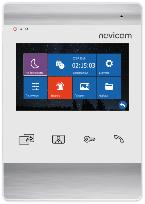 Interkom untuk komunikasi video koleksi NIGHT FREEDOM dengan nomor 4611 memiliki dimensi sebagai berikut - 22,6x15,1x2,3 cm.Suhu operasi minimum di ruangan tempat gadget dipasang adalah -10 °C, dan maksimum + 50 °C. Semua gambar dan video berwarna.