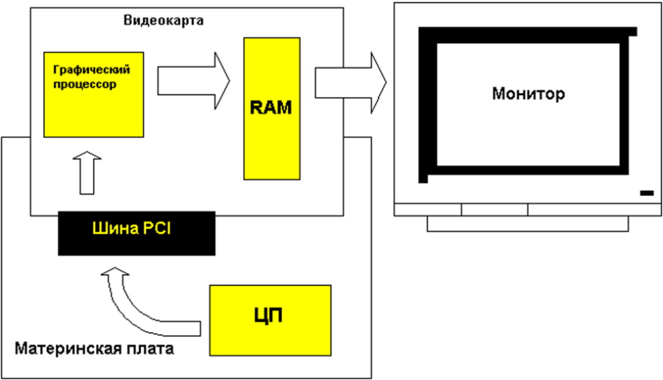 Skema umum pengoperasian kartu video di komputer menyediakan tindakan berikut.