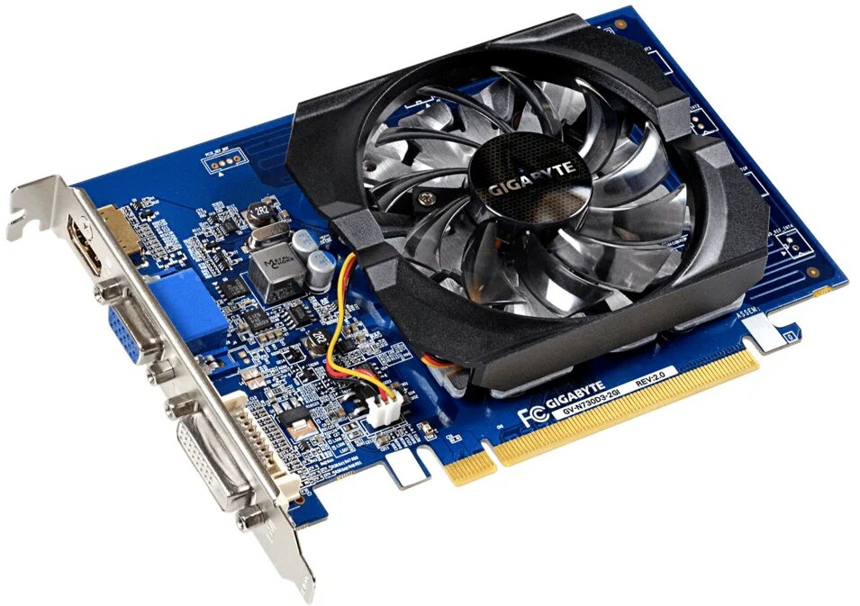 | GIGABYTE GeForce GT 730 | 2 | 64 | 4096x2160 | aktif | 10179 |