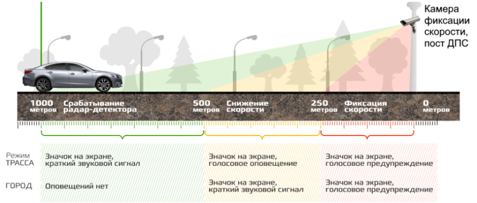 Salah satu pelanggaran lalu lintas yang paling sering terjadi di jalan Rusia adalah ngebut. Petugas polisi lalu lintas dipersenjatai dengan perangkat modern untuk menentukan kecepatan, sehingga jumlah hukuman terhadap pelanggar tidak berkurang. Selain itu, hukuman untuk pelanggaran yang dilakukan meningkat setiap tahun. Detektor yang mampu melacak sinyal kompleks dan sistem polisi dirancang untuk memperingatkan pengemudi sebelum mendekati titik kontrol kecepatan stasioner atau bergerak.