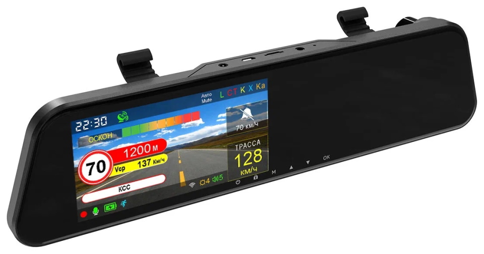 Model gabungan universal dengan fungsi DVR dan detektor tersembunyi di rumah kaca spion. Perekaman video dilakukan dalam format Full HD pada sudut pandang 140⁰ dengan gambar yang detail dan jelas baik di siang hari normal maupun dalam kondisi visibilitas yang tidak memadai: di malam hari, di malam hari, saat hujan. Prosesor yang kuat memastikan operasi yang stabil.Teknologi tanda tangan untuk mengenali kode digital sinyal radar atau objek lain untuk menetapkan batas kecepatan memastikan pembaruan perpustakaan secara teratur. Penerimaan pulsa radio yang sangat baik dilakukan oleh antena patch ergonomis modern.