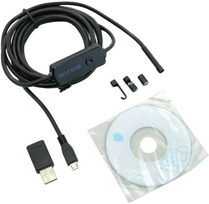 Di ujung probe ada 6 lampu tipe LED. Kecerahan lampu latar dapat disesuaikan, yang membuat tampilan menjadi lebih mudah. Perangkat ini mudah dihubungkan ke PC atau tablet melalui USB/mini USB.Perangkat lunak yang disertakan dengan model memungkinkan Anda untuk melihat gambar yang diambil di monitor, serta merekam video.