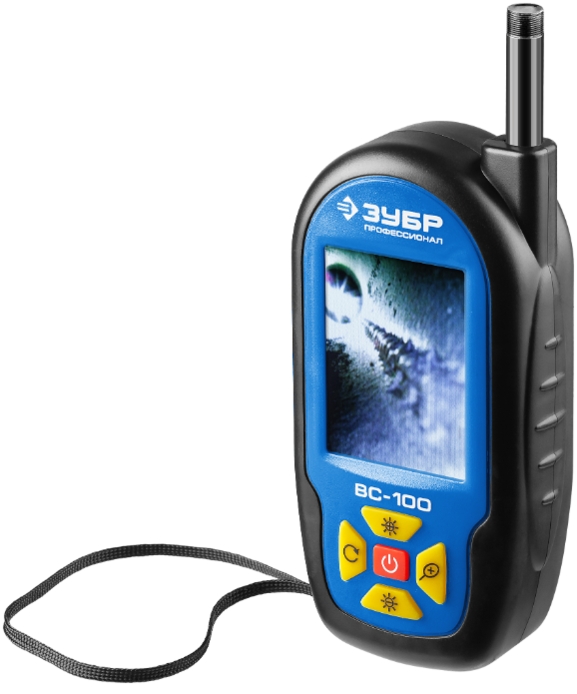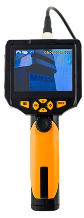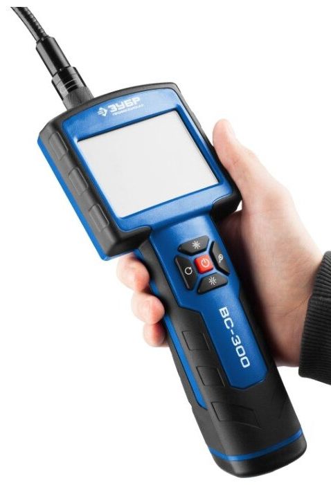 Perangkat ini cocok untuk pembangunan jaringan pipa, untuk menjelajahi interior alat berat, mesin, dll. Dilengkapi dengan layar LCD besar 3,5 inci dan ditenagai oleh empat baterai AA. Dapat dihubungkan ke TV atau monitor komputer. Panel kontrol terletak tepat di bawah layar, tujuan dari semua tombol adalah intuitif.Dalam hal ini, diameter kamera adalah 12 mm, dan panjang fokus minimum adalah 50 mm.