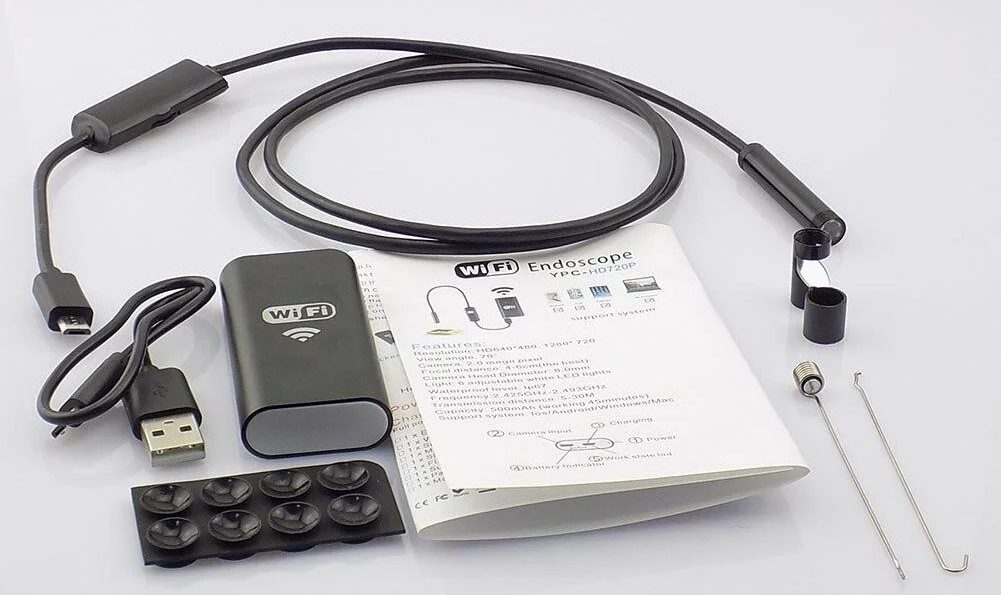 Endoskopi anggaran menengah dengan jangkauan Wi-Fi hingga 20 meter. Probe dilengkapi dengan pengait khusus untuk menangkap benda kecil, magnet untuk menarik bagian besi dan cermin untuk dilihat. Perangkat dilindungi dari air dan debu dengan indeks perlindungan IP67. Resolusi video maksimum adalah 640x480 piksel. Tidak ada tampilan bawaan, gambar disiarkan ke perangkat seluler yang terhubung. Perangkat ini dijual dengan harga rata-rata 5500 rubel.