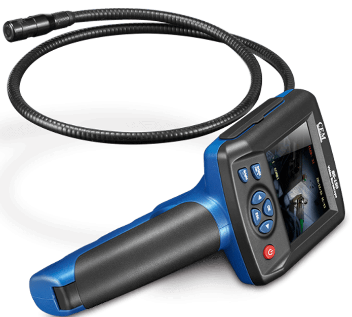Model ini dilengkapi dengan probe fleksibel yang tahan air dan memiliki panjang 1 m. Perangkat ini digunakan untuk inspeksi visual dan diagnosis sistem ventilasi, saluran pipa, mesin, dan peralatan listrik lain-lain.
