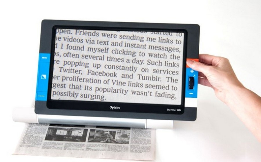Biasanya, pembesar video (atau pembesar elektronik) digunakan oleh orang-orang tunanetra. Dengan sendirinya, ini adalah perangkat yang cukup sederhana dan tidak memerlukan pengembangan yang lama. Dengan bantuan kaca pembesar seperti itu, sangat nyaman untuk membaca dan menulis, memecahkan teka-teki silang, dan terlibat dalam kegiatan lain yang terkait dengan keterampilan motorik halus. Salah satu fitur utama alat ini adalah dapat dihubungkan ke layar eksternal untuk menyederhanakan proses memahami objek dan simbol kecil.