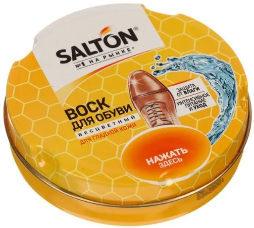 Wax Salton memiliki fungsi yang luas, berkat nutrisi intensif, memperpanjang umur sepatu. Tutup snap-on menutup dengan mudah dan kedap udara. Pilihan terbaik untuk diproses sebelum penyimpanan jangka panjang. Warna: transparan. Harga: 356 rubel.