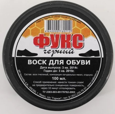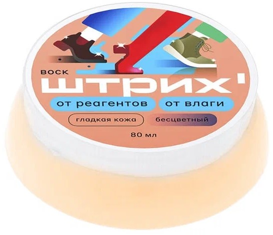 Lilin universal untuk perawatan produk kulit halus. Dijual dalam bentuk padat, tetapi dapat dicairkan, tidak akan mengubah sifat-sifatnya. Saat dipoles, gambar cermin dibuat yang bertahan lama. Tanpa bau. Berat: 24 gram. Harga: 465 rubel.