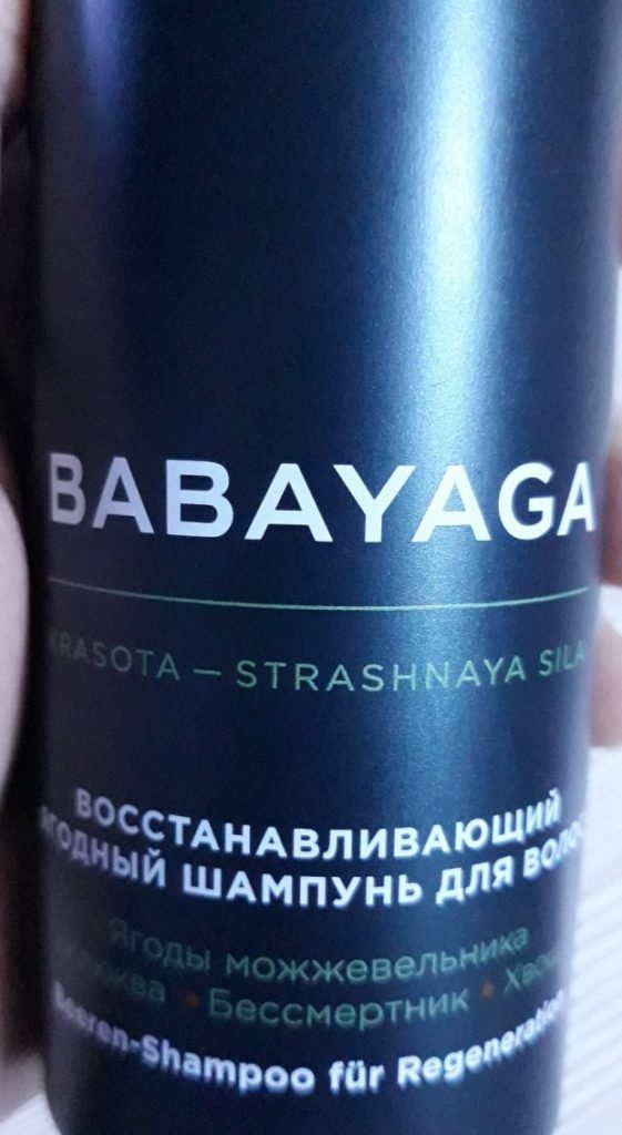 Dengan nama Babayaga, produsen sampo mudah dikenali. Namanya mengandung arti, karena Baba Yaga berubah menjadi cantik jika diinginkan, ikal rapuh yang tipis akan menjadi sangat indah. Mereka akan dipulihkan oleh satu set tanaman hutan yang dipimpin oleh immortelle dan ekor kuda, serta cranberry rawa dan juniper. Ekstrak dan ekstrak menghilangkan untaian kekeringan dan kerapuhan, memperkuatnya.