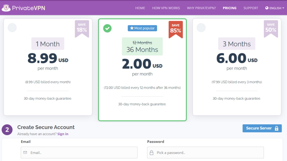 Ada tiga rencana tarif: untuk satu bulan, satu dan dua tahun.