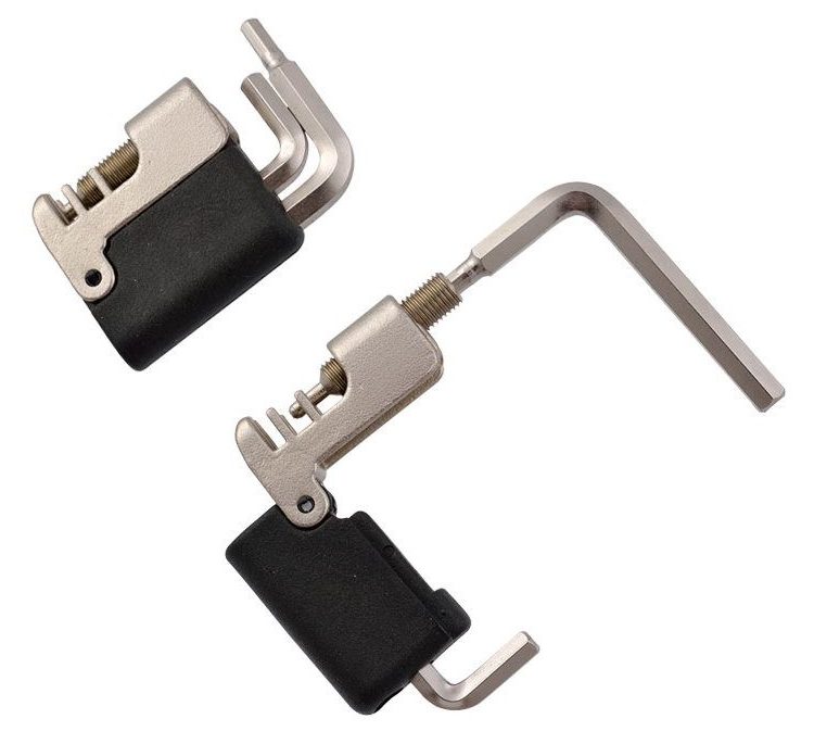 Dari merek BBB. Diposisikan sebagai alat profesional. Pegangan karet non-slip, kemampuan untuk menyesuaikan alat dengan ukuran tautan (termasuk 11 kecepatan). Ukuran kompak dan mudah digunakan. Alat yang sangat diperlukan untuk pengendara sepeda yang merencanakan perjalanan jauh. Pin cadangan disertakan.